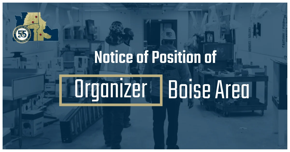 SMART Local 55 will be seeking applicants for a Boise area organizer. Interested candidates who meet the qualifications of Article 12 Section 3 of the SMART Constitution and Ritual may apply for the position. Candidates for interviews will be selected from the resumes submitted.